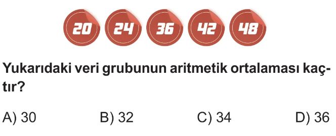 6. Sınıf Merkezi Eğilim Ölçüleri (Aritmetik Ortalama, Ortanca, Açıklık, Tepe Değer) Test 4