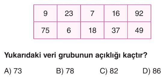 6. Sınıf Merkezi Eğilim Ölçüleri (Aritmetik Ortalama, Ortanca, Açıklık, Tepe Değer) Test 4
