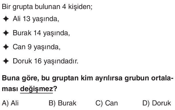 6. Sınıf Merkezi Eğilim Ölçüleri (Aritmetik Ortalama, Ortanca, Açıklık, Tepe Değer) Test 5