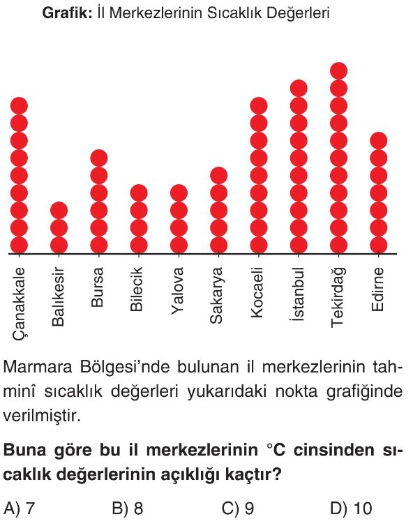 6. Sınıf Merkezi Eğilim Ölçüleri (Aritmetik Ortalama, Ortanca, Açıklık, Tepe Değer) Test 5
