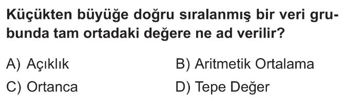6. Sınıf Merkezi Eğilim Ölçüleri (Aritmetik Ortalama, Ortanca, Açıklık, Tepe Değer) Test 5
