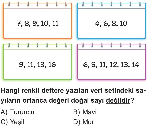 6. Sınıf Merkezi Eğilim Ölçüleri (Aritmetik Ortalama, Ortanca, Açıklık, Tepe Değer) Test 6
