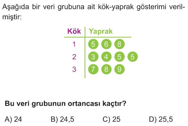 6. Sınıf Merkezi Eğilim Ölçüleri (Aritmetik Ortalama, Ortanca, Açıklık, Tepe Değer) Test 7