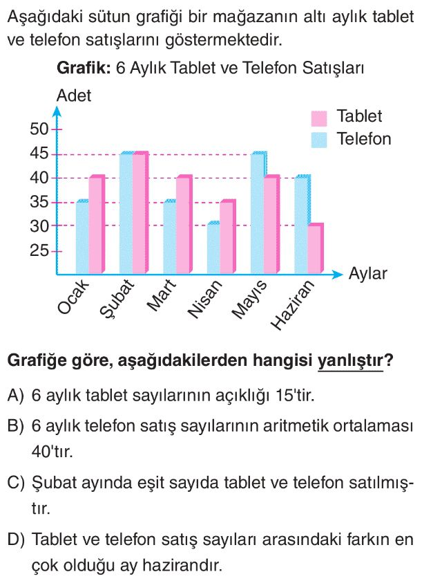 6. Sınıf Merkezi Eğilim Ölçüleri (Aritmetik Ortalama, Ortanca, Açıklık, Tepe Değer) Test 7