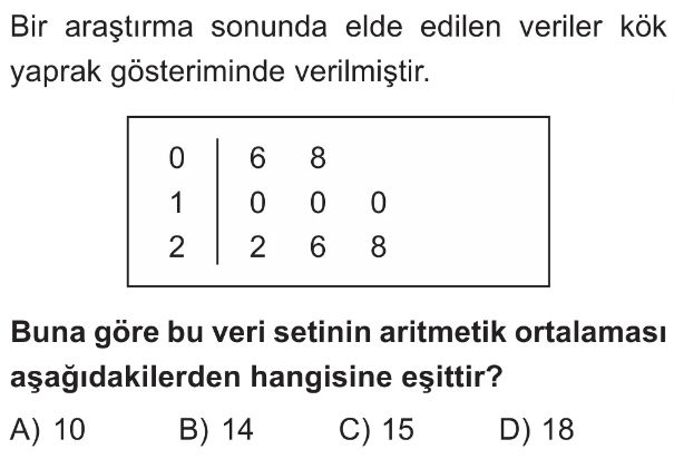 6. Sınıf Merkezi Eğilim Ölçüleri (Aritmetik Ortalama, Ortanca, Açıklık, Tepe Değer) Test 8