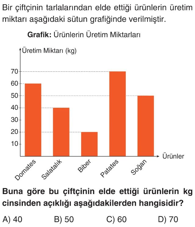 6. Sınıf Merkezi Eğilim Ölçüleri (Aritmetik Ortalama, Ortanca, Açıklık, Tepe Değer) Test 8