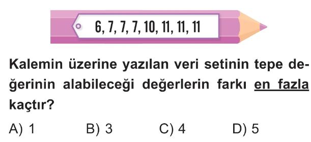 6. Sınıf Merkezi Eğilim Ölçüleri (Aritmetik Ortalama, Ortanca, Açıklık, Tepe Değer) Test 9