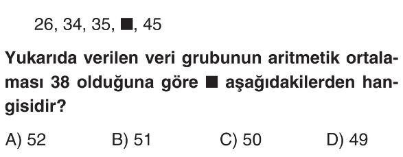 6. Sınıf Merkezi Eğilim Ölçüleri (Aritmetik Ortalama, Ortanca, Açıklık, Tepe Değer) Test 9
