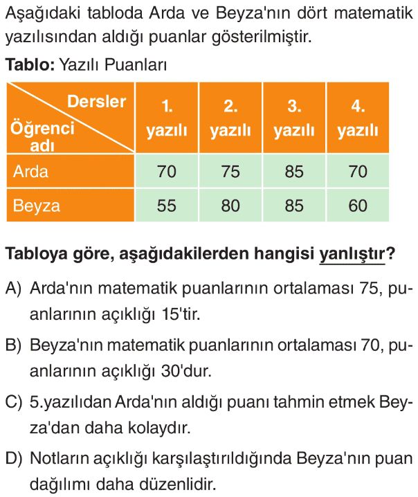 6. Sınıf Merkezi Eğilim Ölçüleri (Aritmetik Ortalama, Ortanca, Açıklık, Tepe Değer) Test 10