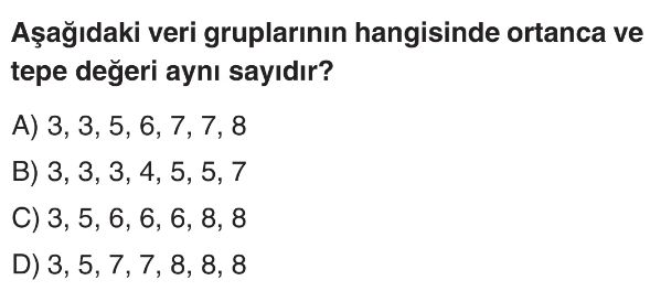 6. Sınıf Merkezi Eğilim Ölçüleri (Aritmetik Ortalama, Ortanca, Açıklık, Tepe Değer) Test 10
