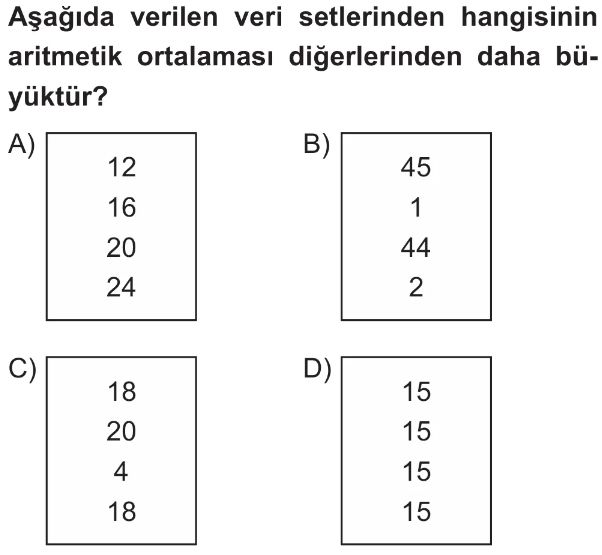 6. Sınıf Merkezi Eğilim Ölçüleri (Aritmetik Ortalama, Ortanca, Açıklık, Tepe Değer) Test 10