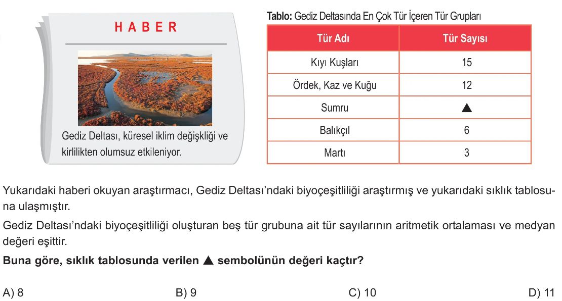 6. Sınıf Merkezi Eğilim Ölçüleri (Aritmetik Ortalama, Ortanca, Açıklık, Tepe Değer) Test 10