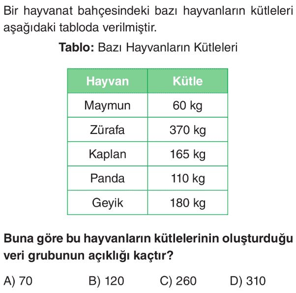 6. Sınıf Merkezi Eğilim Ölçüleri (Aritmetik Ortalama, Ortanca, Açıklık, Tepe Değer) Test 11