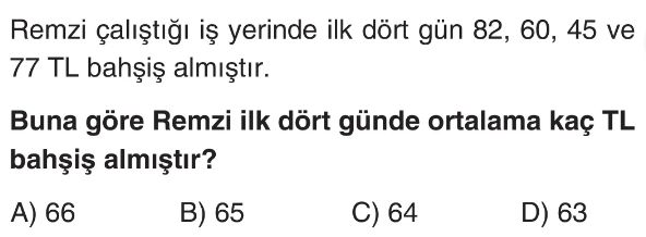 6. Sınıf Merkezi Eğilim Ölçüleri (Aritmetik Ortalama, Ortanca, Açıklık, Tepe Değer) Test 11