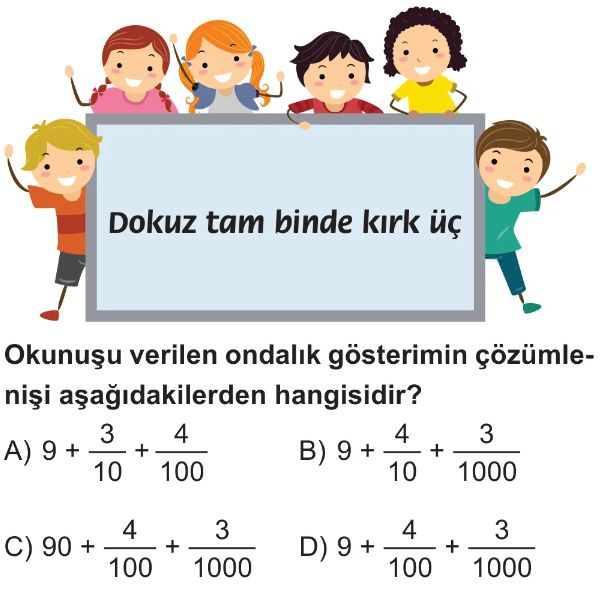 6. Sınıf Ondalık Gösterimlerde Basamak Değeri ve Çözümleme Test 1