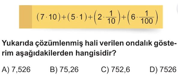 6. Sınıf Ondalık Gösterimlerde Basamak Değeri ve Çözümleme Test 1