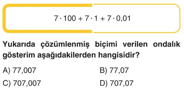 6. Sınıf Ondalık Gösterimlerde Basamak Değeri ve Çözümleme Test 2