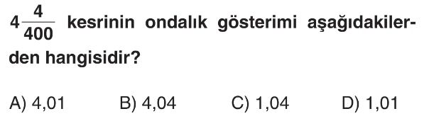 6. Sınıf Ondalık Gösterimlerde Basamak Değeri ve Çözümleme Test 2