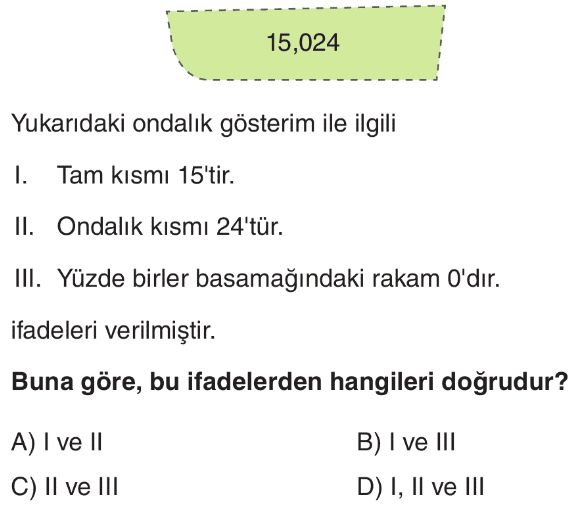 6. Sınıf Ondalık Gösterimlerde Basamak Değeri ve Çözümleme Test 2
