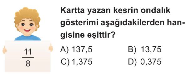 6. Sınıf Ondalık Gösterimlerde Basamak Değeri ve Çözümleme Test 3