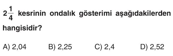 6. Sınıf Ondalık Gösterimlerde Basamak Değeri ve Çözümleme Test 3