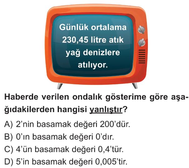 6. Sınıf Ondalık Gösterimlerde Basamak Değeri ve Çözümleme Test 3