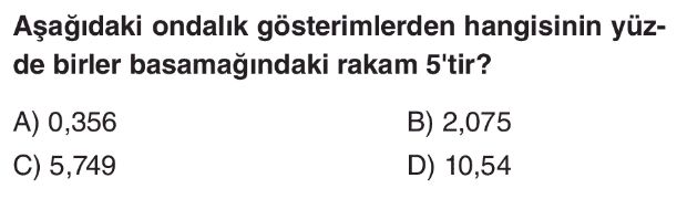6. Sınıf Ondalık Gösterimlerde Basamak Değeri ve Çözümleme Test 3