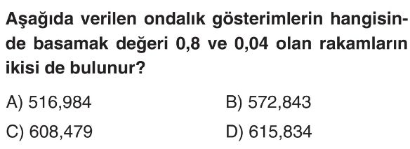 6. Sınıf Ondalık Gösterimlerde Basamak Değeri ve Çözümleme Test 3
