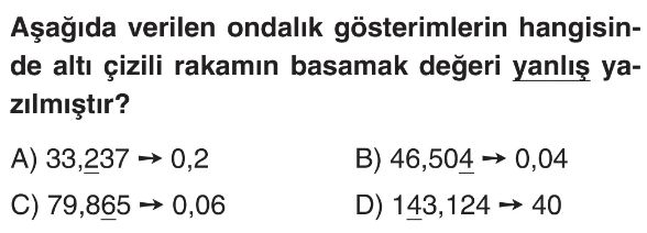 6. Sınıf Ondalık Gösterimlerde Basamak Değeri ve Çözümleme Test 4
