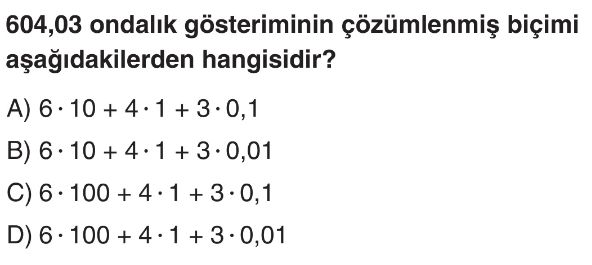 6. Sınıf Ondalık Gösterimlerde Basamak Değeri ve Çözümleme Test 4