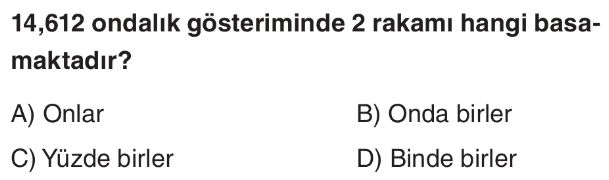 6. Sınıf Ondalık Gösterimlerde Basamak Değeri ve Çözümleme Test 4