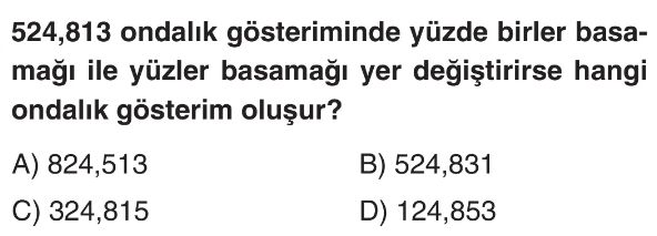 6. Sınıf Ondalık Gösterimlerde Basamak Değeri ve Çözümleme Test 4