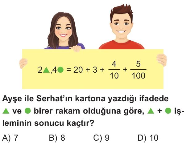 6. Sınıf Ondalık Gösterimlerde Basamak Değeri ve Çözümleme Test 4