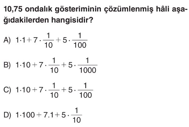6. Sınıf Ondalık Gösterimlerde Basamak Değeri ve Çözümleme Test 4