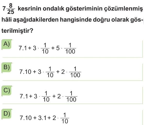 6. Sınıf Ondalık Gösterimlerde Basamak Değeri ve Çözümleme Test 5