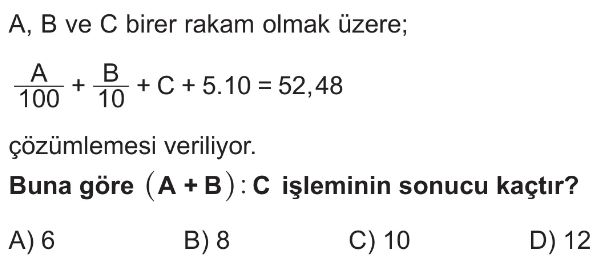 6. Sınıf Ondalık Gösterimlerde Basamak Değeri ve Çözümleme Test 5