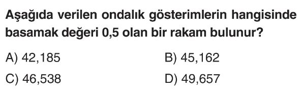 6. Sınıf Ondalık Gösterimlerde Basamak Değeri ve Çözümleme Test 5
