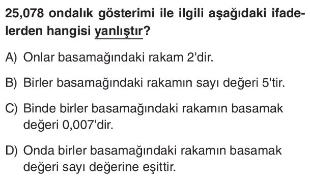6. Sınıf Ondalık Gösterimlerde Basamak Değeri ve Çözümleme Test 5