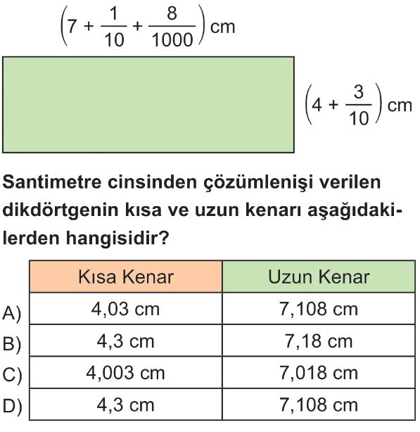 6. Sınıf Ondalık Gösterimlerde Basamak Değeri ve Çözümleme Test 5