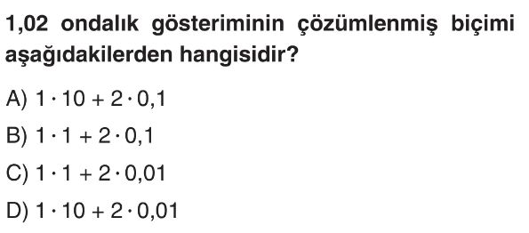 6. Sınıf Ondalık Gösterimlerde Basamak Değeri ve Çözümleme Test 5