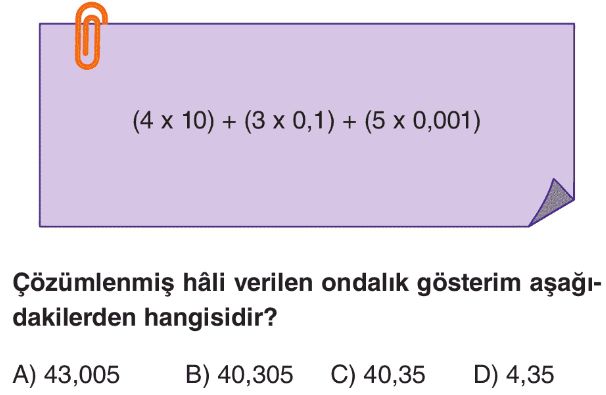 6. Sınıf Ondalık Gösterimlerde Basamak Değeri ve Çözümleme Test 5
