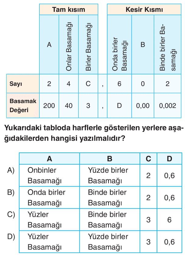 6. Sınıf Ondalık Gösterimlerde Basamak Değeri ve Çözümleme Test 5