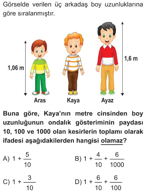 6. Sınıf Ondalık Gösterimlerde Basamak Değeri ve Çözümleme Test 5