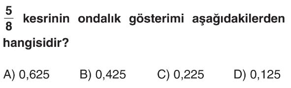 6. Sınıf Ondalık Gösterimlerde Basamak Değeri ve Çözümleme Test 6