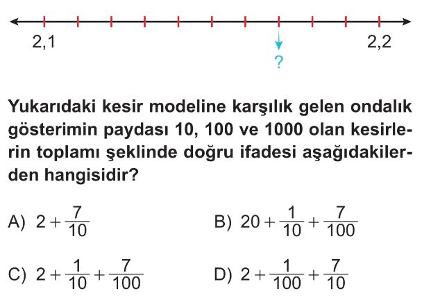 6. Sınıf Ondalık Gösterimlerde Basamak Değeri ve Çözümleme Test 6