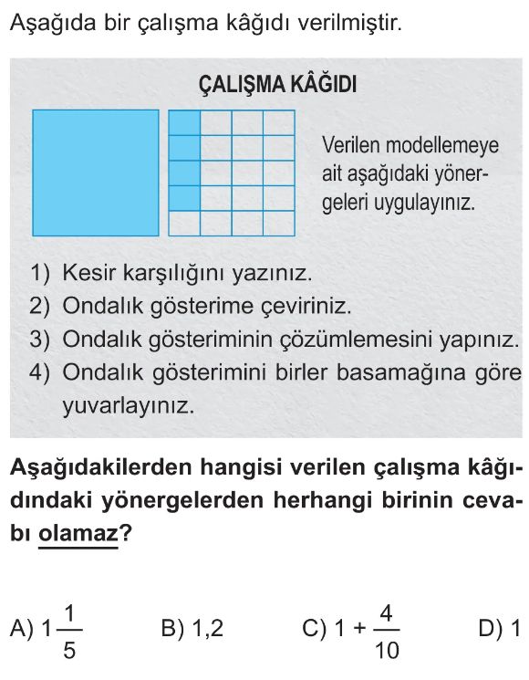 6. Sınıf Ondalık Gösterimlerde Basamak Değeri ve Çözümleme Test 6