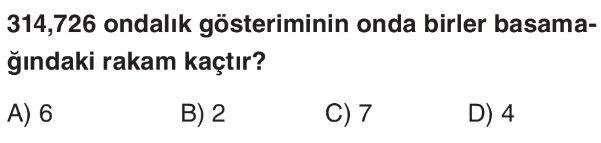 6. Sınıf Ondalık Gösterimlerde Basamak Değeri ve Çözümleme Test 6