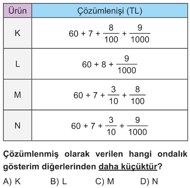6. Sınıf Ondalık Gösterimlerde Yuvarlama ve Sıralama Test 1