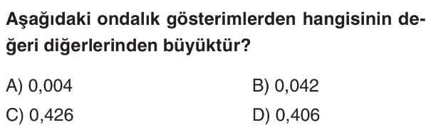 6. Sınıf Ondalık Gösterimlerde Yuvarlama ve Sıralama Test 1