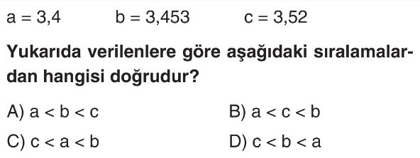 6. Sınıf Ondalık Gösterimlerde Yuvarlama ve Sıralama Test 2